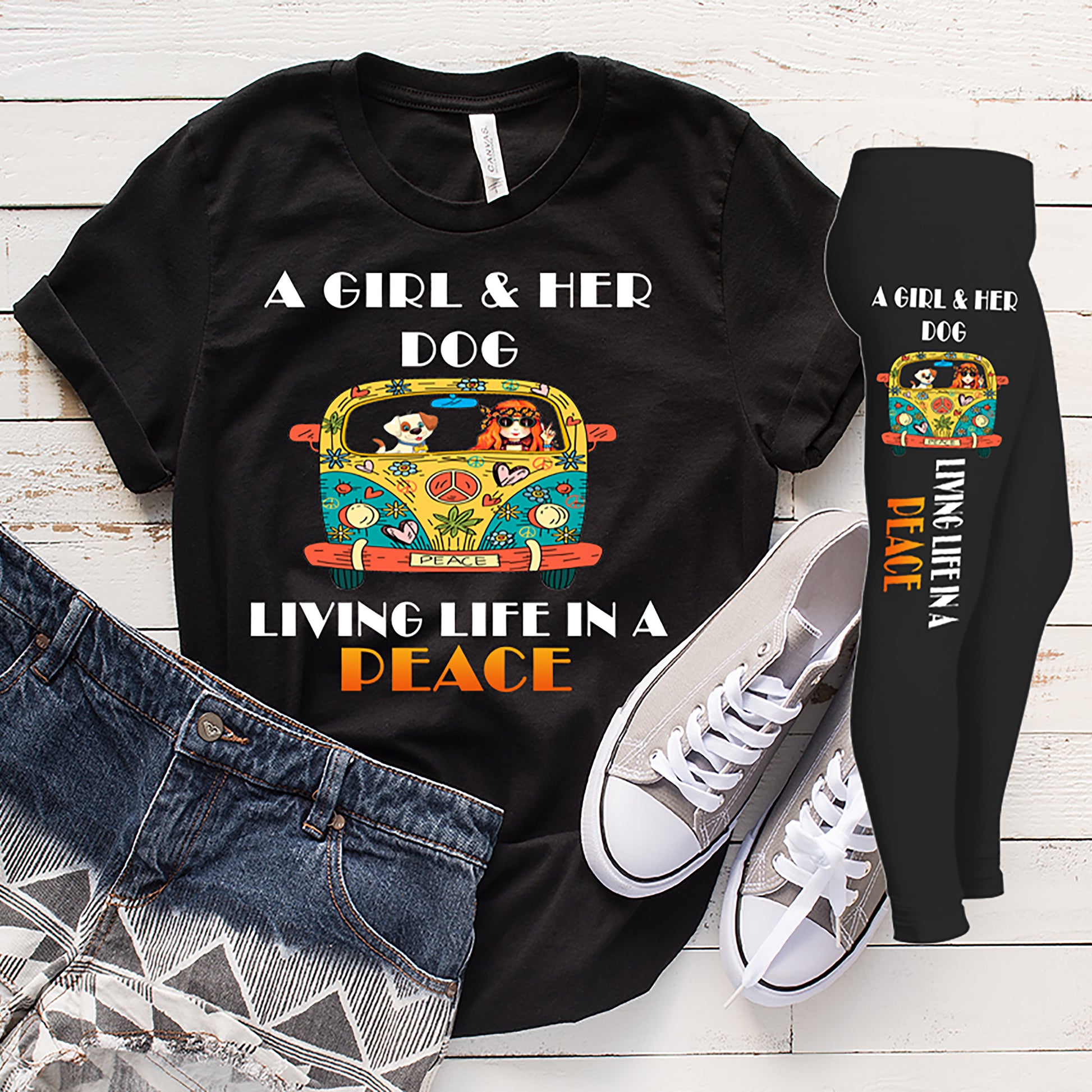 "Combo Pack Of"(A GIRL AND HER DOG LIVING LIFE IN A PEACE) "shirt and legging combo for women"(Flat Shipping)