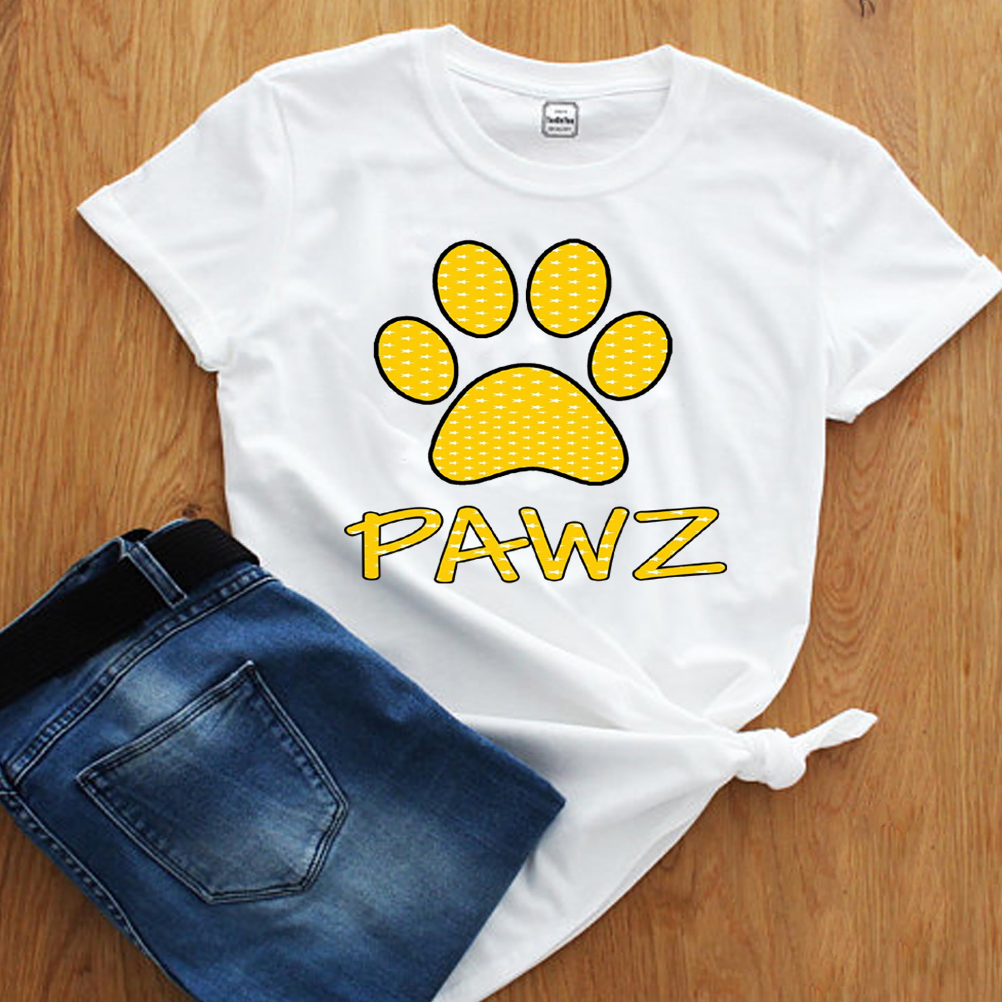 "PAWZ" T-SHIRT- YELLOW DESIGN