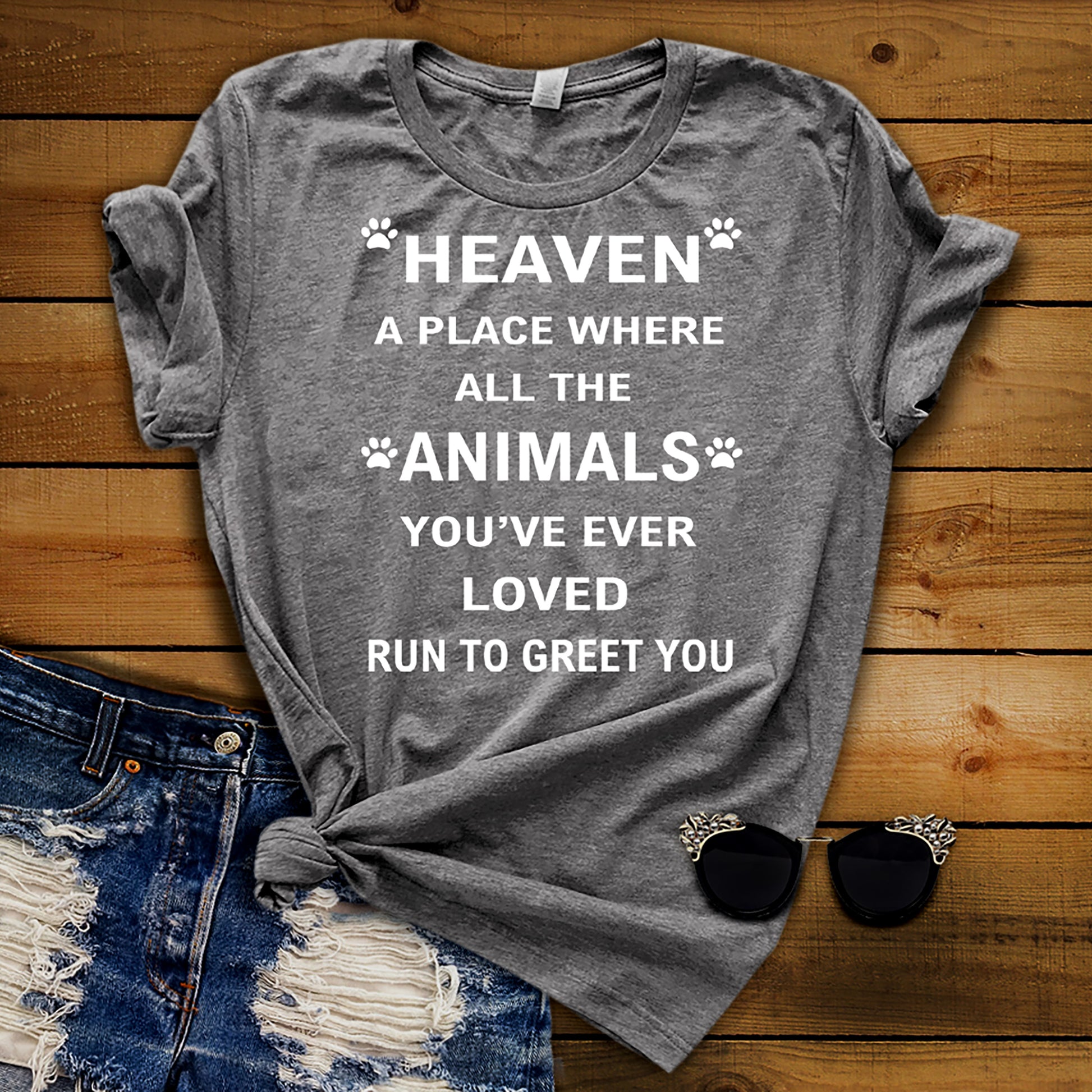 Heaven A Place Where All The Animals.. For Animal Lovers. 70% OFF Today only.(Grey Tshirt)